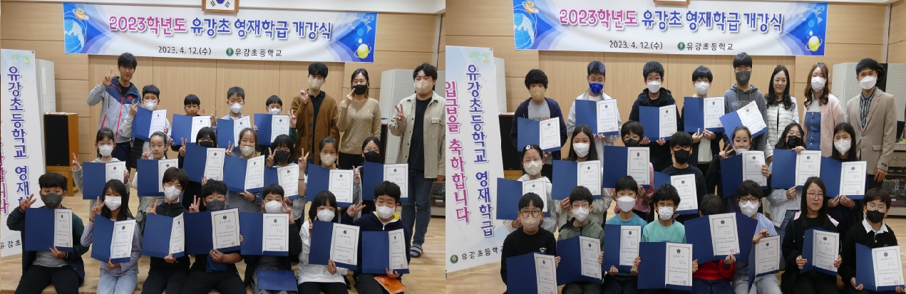 유강초등학교(교장 정명순)는 지난 12일(수) 유강아트홀에서 영재교육 대상학생 39명이 참석한 가운데 영재학급 개강식을 가졌다.