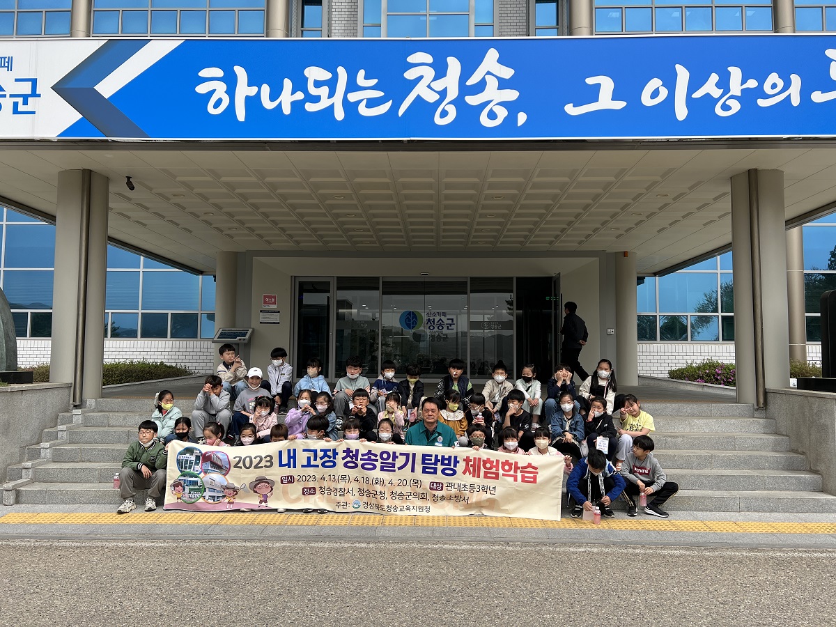 ▢ 청송교육지원청은 관내 초등학교 3학년 학생들을 대상으로 4월 13일(목), 4월 18일(화), 4월 20일(목) 총 3회에 걸쳐 『내 고장 청송 알기 탐방 체험학습』을 실시하였다.