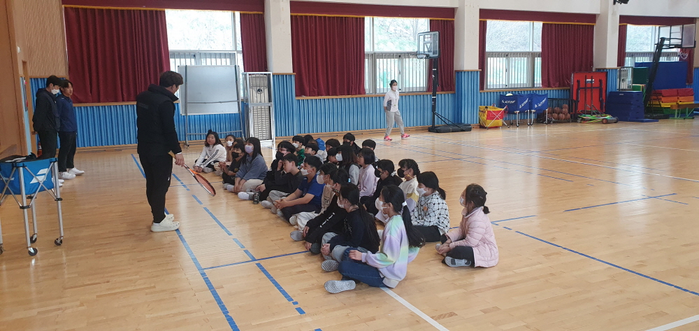 □ 처음에는 굉장히 낯설어하고 어려워하는 분위기가 많았지만 운동부 전임지도자 선생님의 친절한 설명과 함께 지도를 해주자 곧 모든 참가 학생들이 소프트테니스를 즐길 수 있는 시간이 되었다.