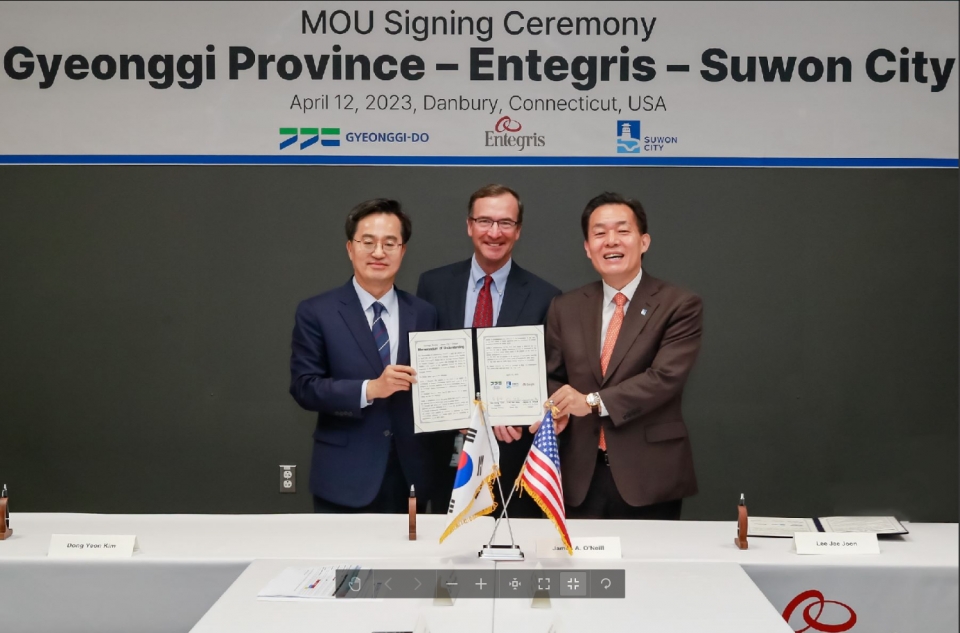 수원시와 경기도는 12일 16시(현지 시각) 인테그리스와 미국 코네티컷주 댄버리에 위치한 인테그리스 댄버리 기술센터에서 투자유치 협약을 체결했다.