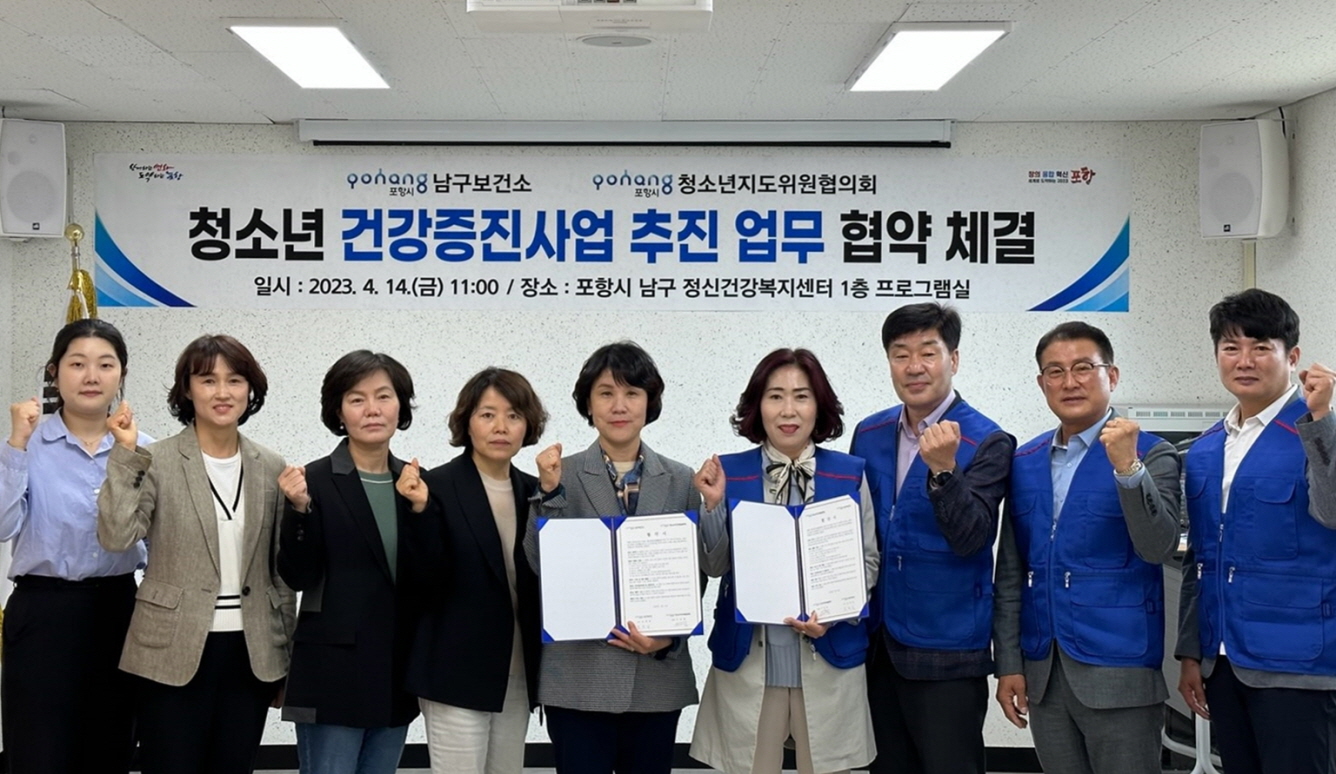 포항시 남구보건소와 청소년지도위원협의회는 14일 남구 정신건강복지센터에서 청소년들의 건강생활실천 유도 및 올바른 성장을 위한 청소년 건강증진 업무 협약을 체결했다.