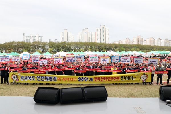 이날 강영석 상주시장, 도의원, 시의원, 의용소방대원 등 850여명이 참여해‘경상북도 안전체험관은 준비된 도시 상주로’라는 구호를 외치며 퍼포먼스를 선보였다.