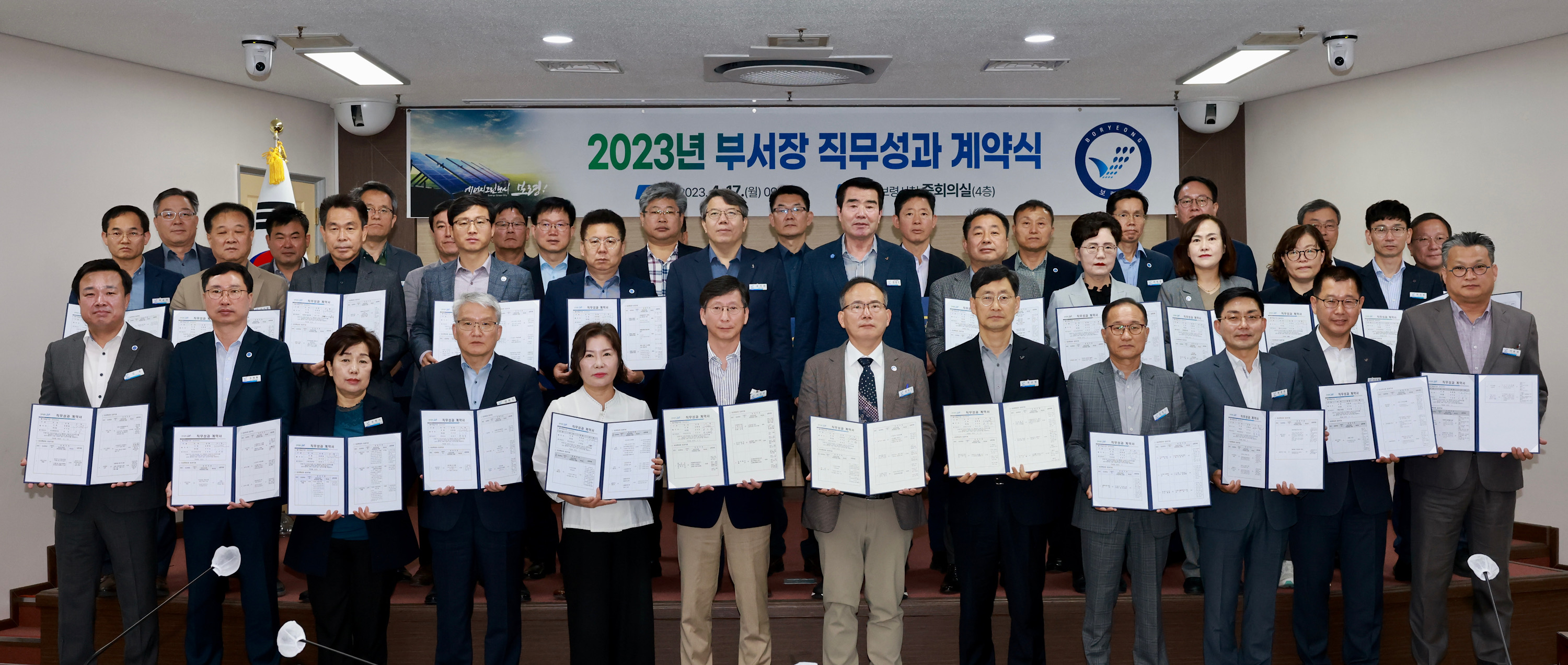 보령시는 17일 시청 중회의실에서 김동일 시장을 비롯한 5급 이상 간부공무원 60명이 참석한 가운데 2023년 부서장 직무성과 계약식을 가졌다.