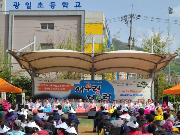 [금요저널] 광명시 광명6동 주민자치회는 지난 15일 우리어린이공원에서 서도소리 마을 예술공연 ‘어우렁 더우렁’을 개최했다.