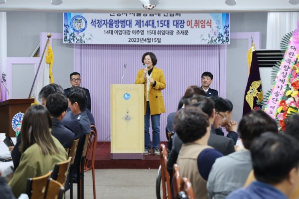 석정자율방범대원과 각 읍면동 방범대장 및 내빈 등 100여명이 참석한 가운데 열린 행사에서 조재문 신임 자율방범대장은 여러 대원들과 함께 더욱 안전하고 살기 좋은 안성을 만들기 위해 노력할 것을 다짐하는 한편 그 동안 적극적인 활동을 통해 시민들의 안전한 삶을 위해 노력 해준 이주영 전 대장에게 감사를 전했다.