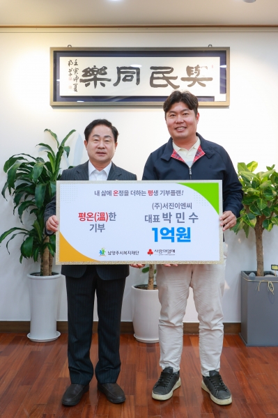 [금요저널] ㈜서진이엔씨 박민수 대표는 17일 남양주시 내 취약계층을 지원하기 위해 1억원 기부를 약정하며 남양주시복지재단의 평생 기부 프로그램 ‘평온한 기부’에 동참했다.