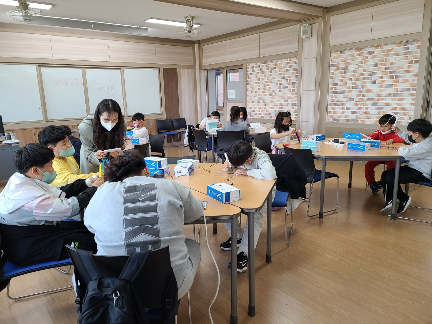 □ 이날 초등 발명로봇반은 발명 안전교육을 시작으로 세상을 바꾼 기발한 발명 아이디어와 미래 사회에 활용될 드론, 로봇 등 다양한 기계들을 찾아보고, 3d 펜을 활용한 나만의 명찰만들기 수업을 진행하였다.
