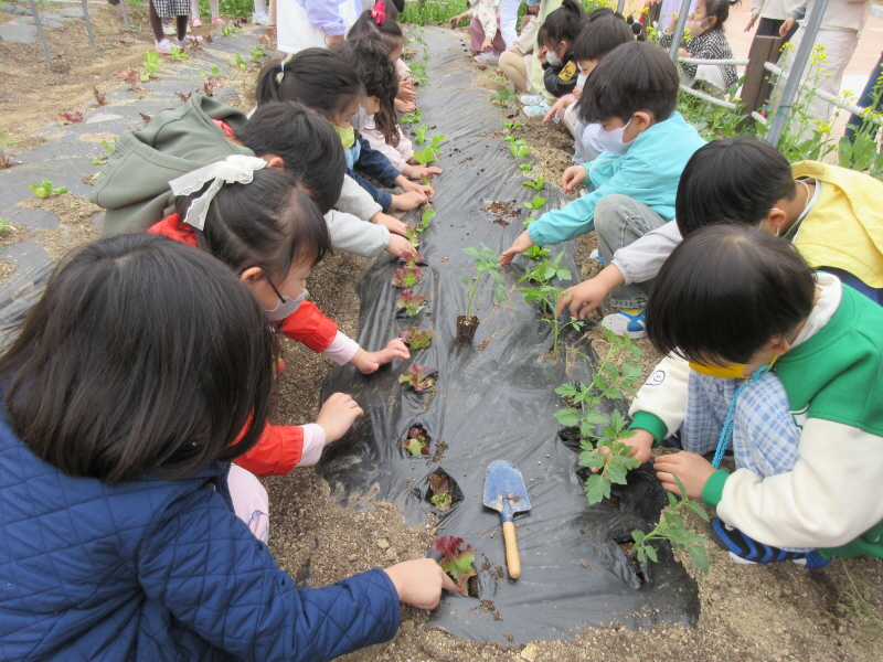 □ 땅에 구멍을 내고 모종을 넣고 흙을 덮는 모습에서 유아들의 진지한 모습도 볼 수 있었다. 푸름2반의 정◯◯는 “제가 심은 대추는 노란 대추가 열린다고 했어요”라고 이야기 하였고, 향기2반의 이◯◯는 “선생님 빨리 날씨가 따뜻해져서 무럭무럭 자랐으면 좋겠어요”라고 소감을 말하였다.