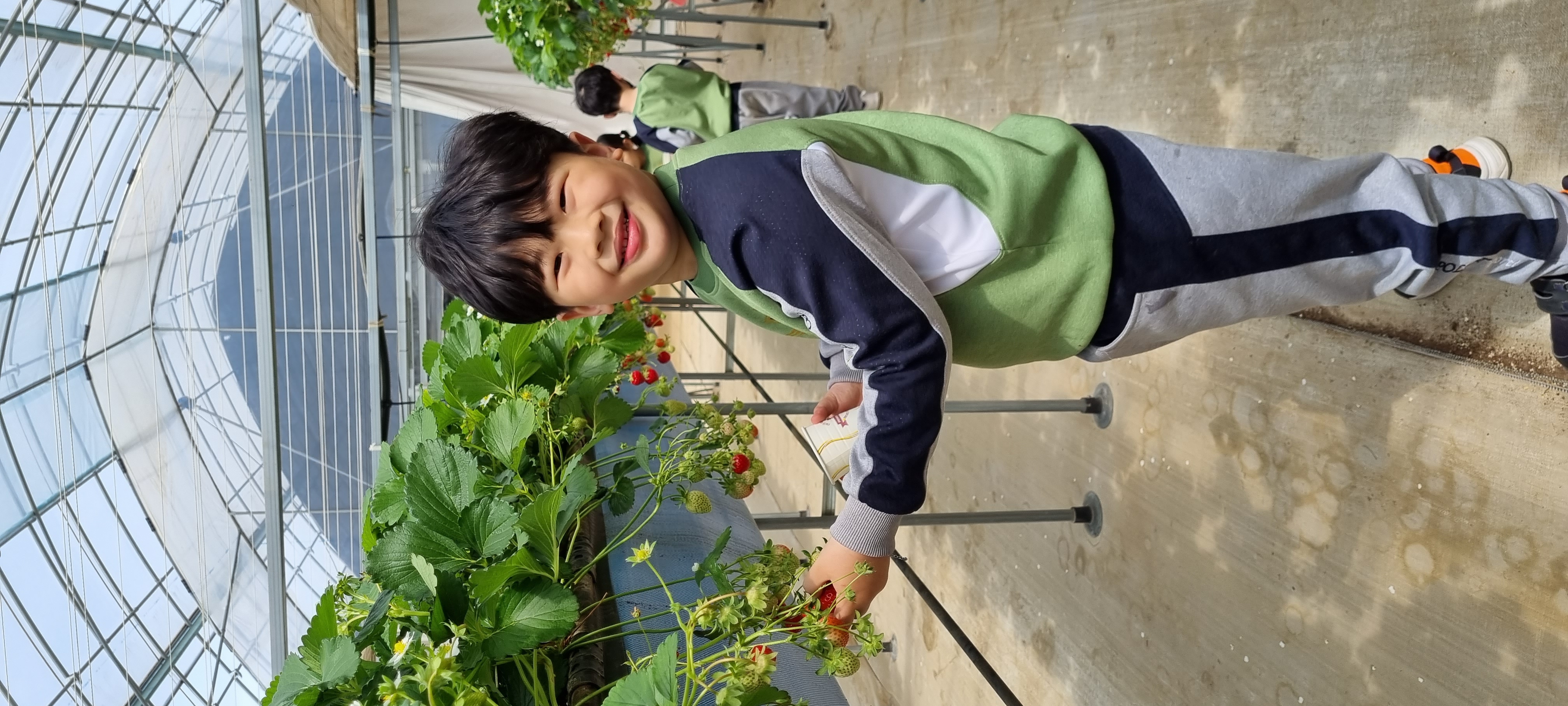 호기심 가득한 눈으로 딸기의 꽃과 잎, 열매를 관찰하고 딸기 색깔이 다른 것에 대해 궁금해 하기도 하였다. 빨갛고 탐스러운 딸기를 따며 잘 익은 딸기를 고르기 위해 신중을 기하는 모습도 보였다. 딸기로 퐁듀 만들기를 할 때 먹고 싶어서 침을 꼴칵 삼기기도 하였다.