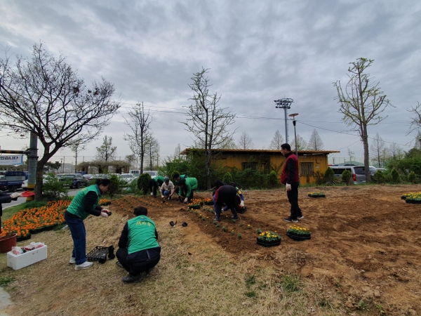 이번 시민운동장 입구 마을꽃밭 조성 활동은 신현동 새마을지도자회 회원이 힘을 합쳐 진행됐다.