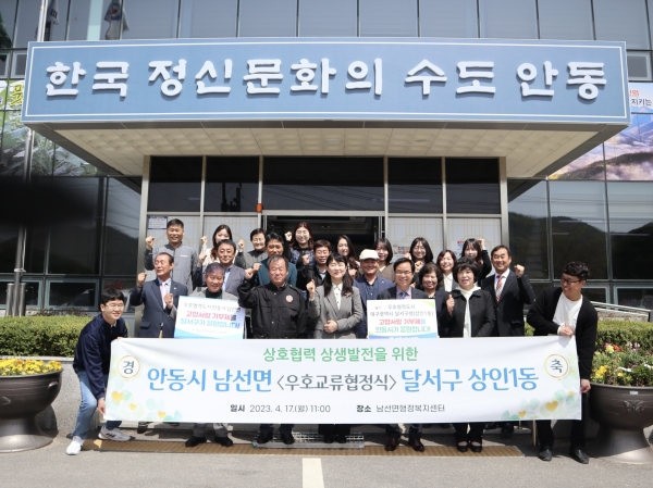 [금요저널] 안동시 남선면은 대구시 달서구 상인1동과 17일 우호교류 협정을 체결하고 두 지역의 공동번영과 주민복지 향상을 위해 협력하기로 했다.