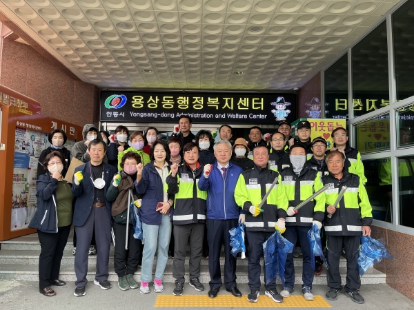 용상동에서는 자생단체별 책임 구역을 나누고 클린시티 담당공무원을 지정해, 국토대청결 환경정화활동을 월 1-2회 추진하고 있다.