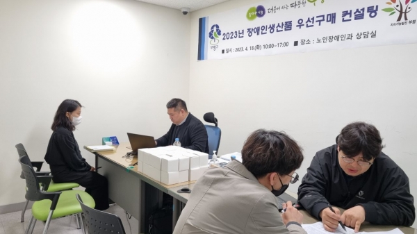 컨설팅은 인천광역시립장애인생산품판매시설과 연계해 부서별로 1:1 맞춤형 상담으로 예산서를 분석해 구매 가능한 품목 제안과 함께 단가 등의 정보를 제공했다.