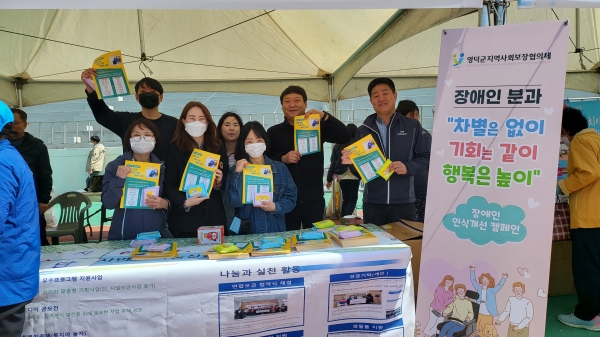 [금요저널] 영덕군지역사회보장협의체 장애인분과 위원 10여명은 지난 17일 영덕군민운동장에서 군민의 날을 기념해 열린 제28회 복사꽃 큰잔치 행사에서 장애인 인식개선을 위한 캠페인을 시행했다.