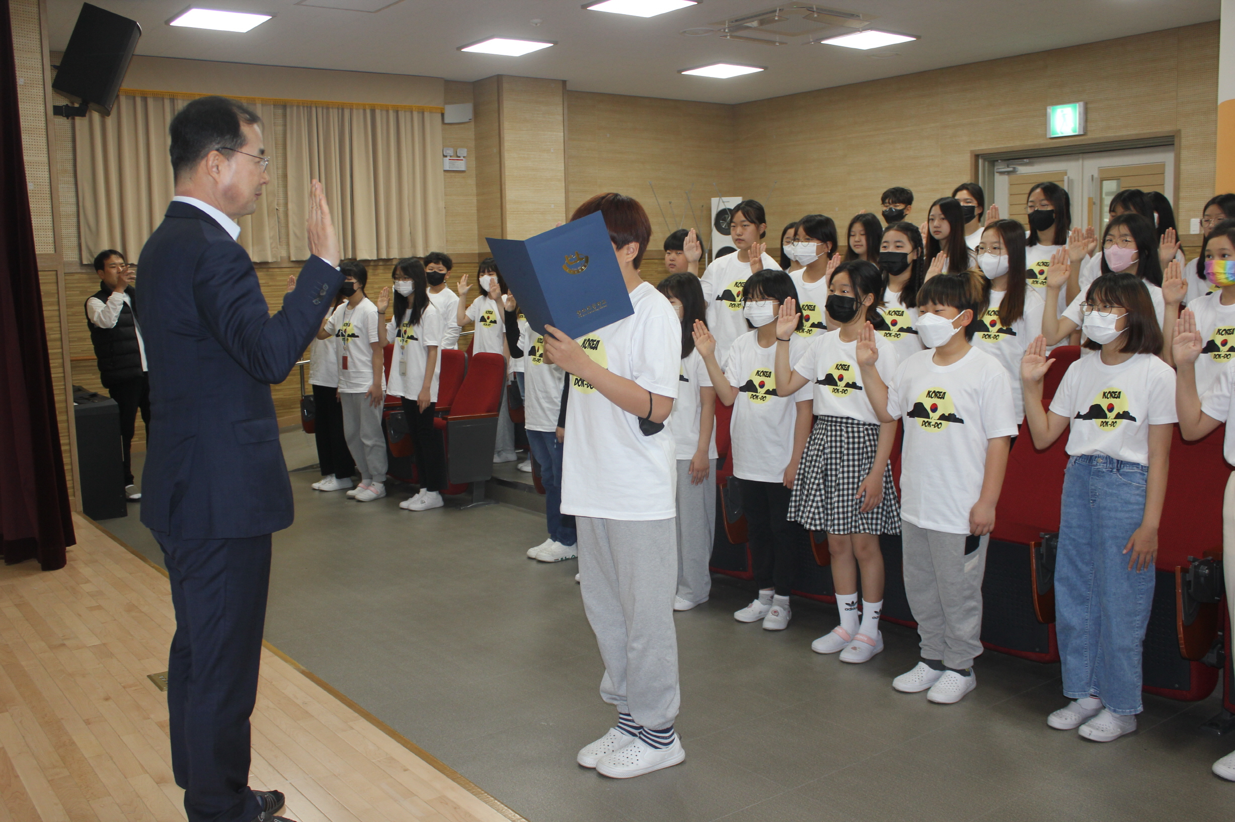 □ 농소초등학교(교장 장영택)는 4월 14일(금) 교내 5~6학년 50명을 대상으로「독도수호 이사부 홍보단」발대식을 개최하였다.