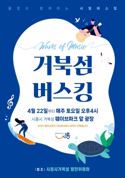 오는 4월 22일을 시작으로 6월 24일까지 10주간 매주 토요일 오후 4시에 거북섬 웨이브파크 앞 광장에서 물결과 함께하는 ‘거북섬 버스킹 Waves Of Music’을 선보인다.