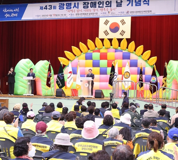 박 시장은 19일 오전 광명시민체육관 실내경기장에서 열린 ‘제43회 장애인의날 기념식’에 참석해 “장애인과 비장애인 모두가 평등한 권리를 누리며 광명시가 함께 성장할 수 있도록 노력하겠다”며 이같이 밝혔다.