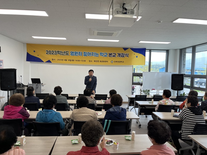 □경북영광학교(교장 강진순, 영천시 북안면 소재) 부설 평생교육원은 지난 18일 북안면 효문화센터에서 ‘2023학년도 영원히 젊어지는 학교 본교 개강식 및 특강’을 가졌다.