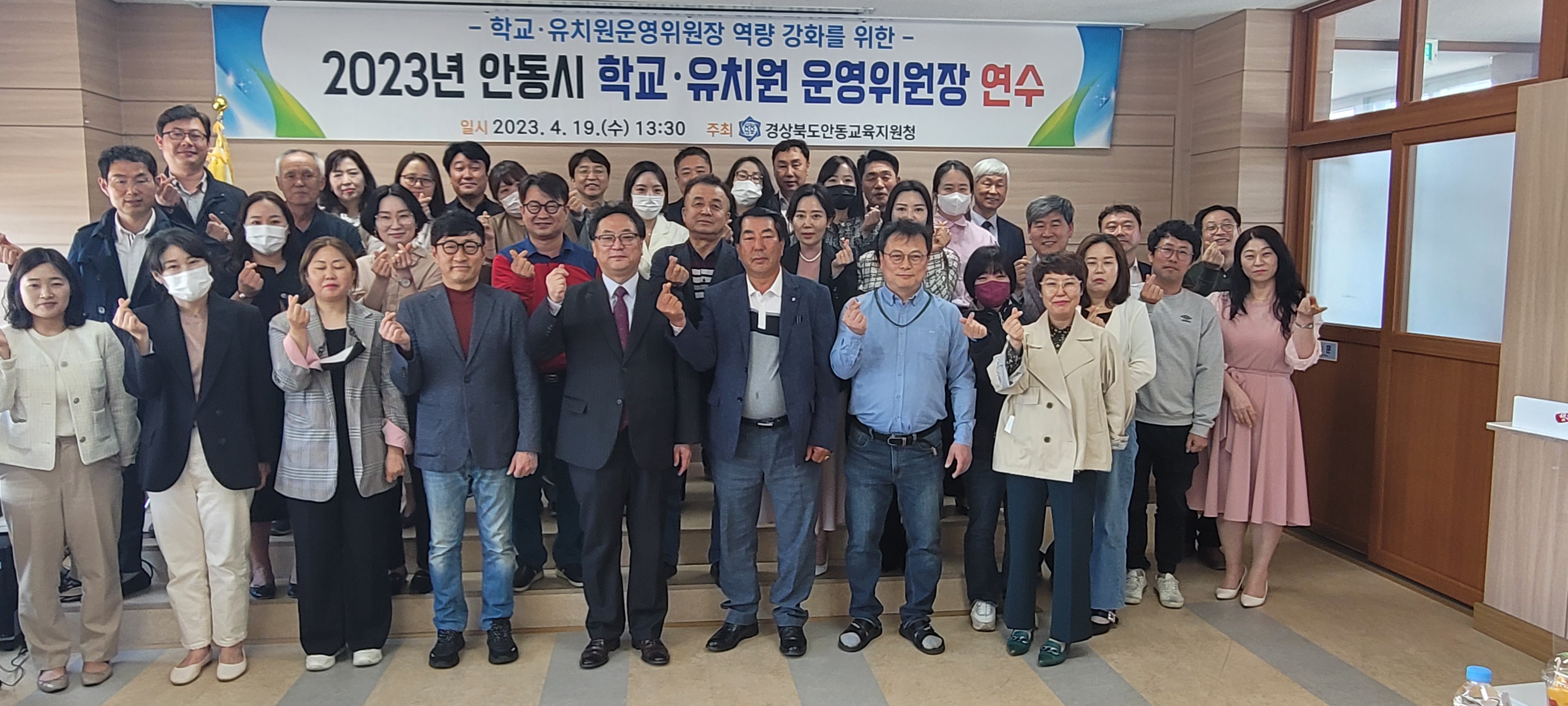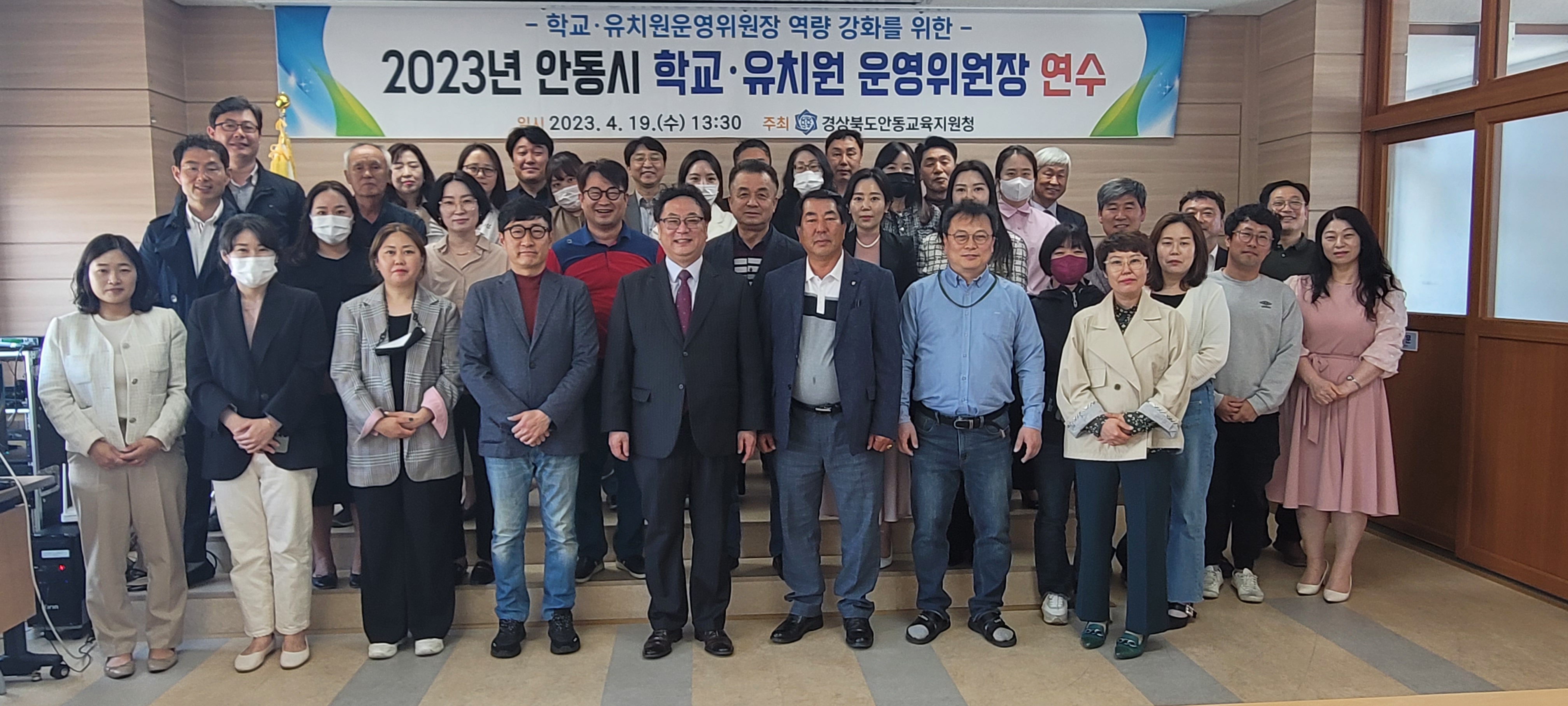 □ 경상북도안동교육지원청(교육장 이순호)은 4월 19일(수) 학교교육지원센터 회의실에서 안동시 관내 유·초·중·고·특수학교운영위원장을 대상으로 “2023년 안동시 학교(유치원)운영위원장 연수”를 개최했다.