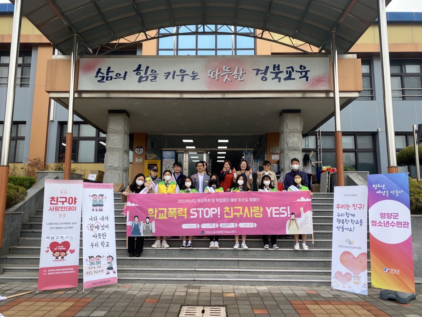 이날 캠페인은 학생들에게 학교폭력 및 학업중단 예방의 중요성을 알려주기 위해 실시되었으며 영양경찰서, 영양군청소년상담복지센터, 영양군보건소 등 다양한 유관기관이 함께 참여하여 학교폭력 발생 시 대처 및 신고 방법에 대한 안내도 동시에 이루어졌다.