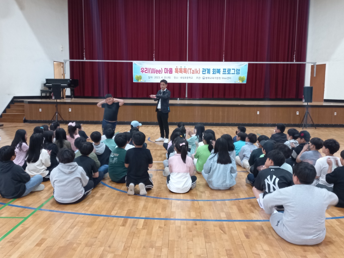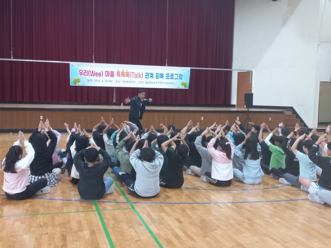 □ 경상북도봉화교육지원청(교육장 박명호) Wee센터는 2023년 4월 20일(목) 내성초등학교 5학년 학생들을 대상으로 「우리(Wee), 마음 톡톡톡(Talk) 관계 회복 프로그램」을 운영하였다.