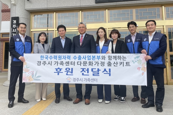 [금요저널] 한국수력원자력 수출사업본부는 19일 경주시 가족센터를 방문해 다문화 출산가정의 임산부와 태어날 아이를 위한 출산축하키트 30세트를 전달했다.
