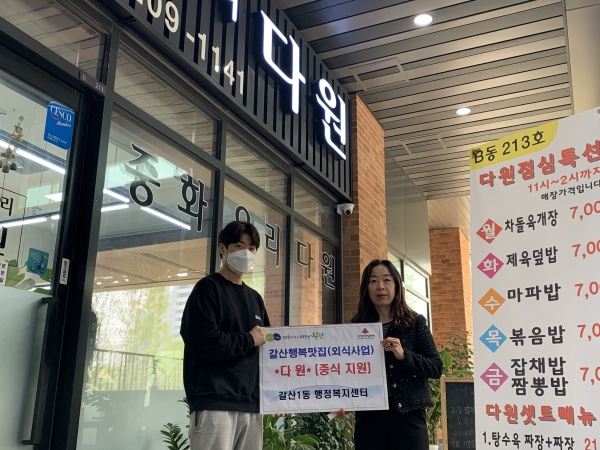 남점숙 갈산1동장은 “지역 내 지역자원의 기부 활성화에 힘써준 관계자께 다시 한번 감사하다”며 “어르신들이 편안하게 혼자서 외식을 즐기셨으면 한다”고 말했다.