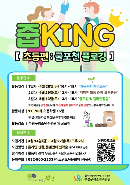 부평구 청소년수련관, 줍KING–초등편:굴포천 플로깅 참가자 모집