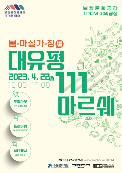 [금요저널] 수원문화재단은 오는 4월 22일 토요일 복합문화공간 111CM 야외광장에서 ‘대유평 111 마르쉐 – 봄 마실가 장’을 개최한다.