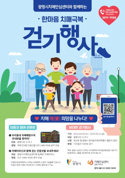 광명시 관계자는 “많은 시민이 한마음 치매 극복 걷기 행사에 참여해 치매 예방을 위한 운동도 하고 치매에 대한 인식을 개선하는 계기가 되길 바란다”고 말했다.