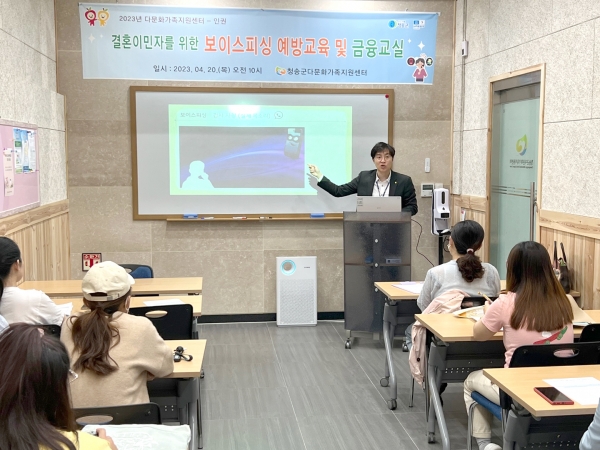 [금요저널] 청송군 다문화가족지원센터는 지난 4월 20일 NH농협 경북본부 현장지원단과 연계해 결혼이민여성 20여명을 대상으로 보이스피싱 예방교육 및 금융교실을 운영했다.