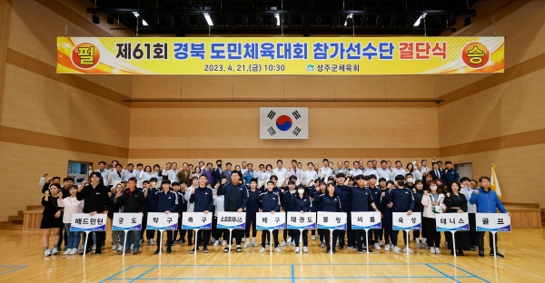 [금요저널] 성주군은 21일 제61회 경북도민체육대회를 앞두고 성주 별고을체육관에서 성주군 선수단 결단식을 갖고 필승의 의지를 다짐했다.