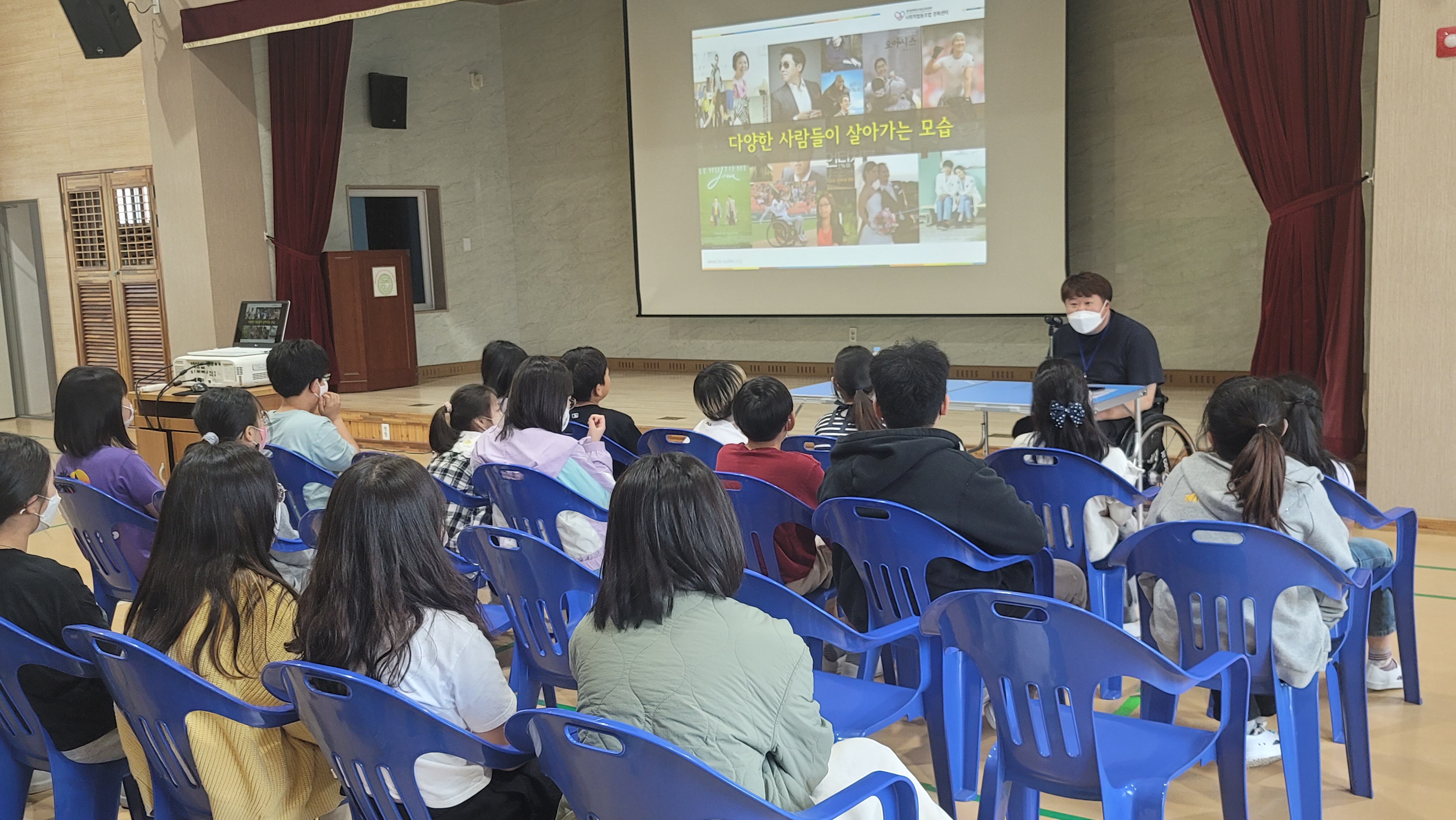 한국장애인식개선교육센터 사회적협동조합 경북센터에서 파견된 이승후 교육 강사는 장애를 딛고 휠체어럭비 국가대표 및 감독까지 이루어 낸 자신의 스토리를 들려주면서‘누구나 장애인이 될 수 있다’, ‘장애인과 비장애인 - 우리는 모두 사회 구성원이다’라는 메시지를 학생들에게 명확하게 전달하였다.