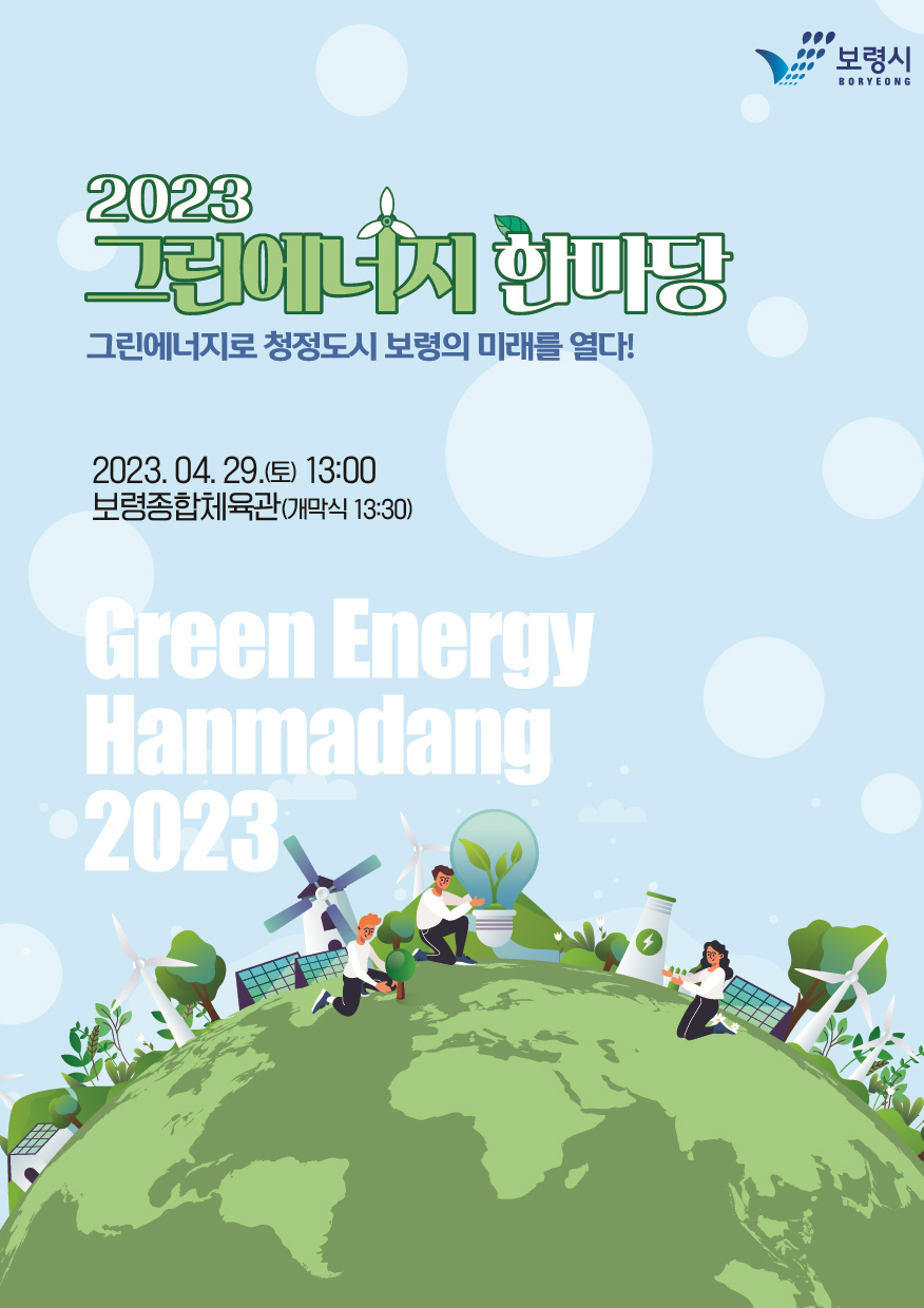 보령시는 오는 29일 보령종합체육관에서 성공적인 그린에너지 사업을 위한 시민·기관 간 만남의 장인 ‘2023 그린에너지 한마당’을 개최한다.