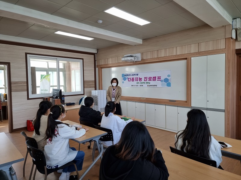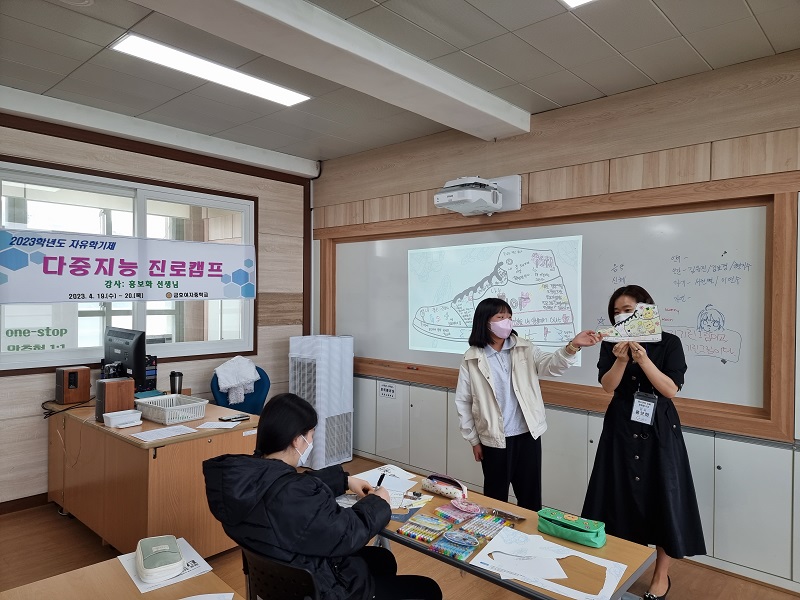 금호여중(교장 박영남)은 4월 19일(수), 20일(목) 중학교 1학년 학생의 꿈·끼 개발을 위해 자유학기제 진로탐색 활동으로 다중지능 진로캠프를 진행하였다.
