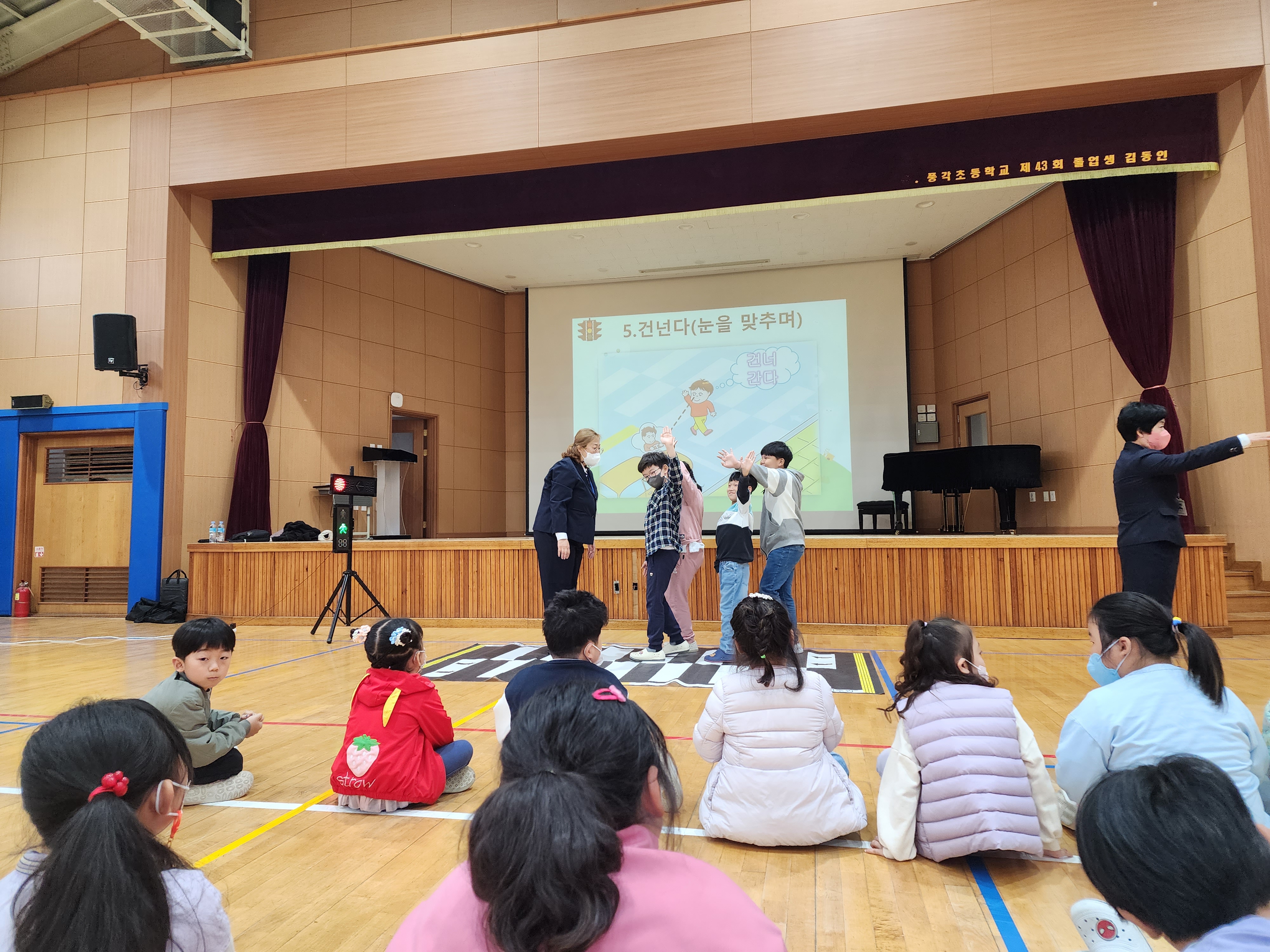 특히 이번 교육에서는 최근 발생한 교통사고의 위험과 올바른 횡단보도 통행 방법을 배우고 모형 횡단보도와 신호등에서 왼쪽, 오른쪽, 왼쪽을 살피고 손을 들고 건너는 방법을 익혀 안전한 보행 방법을 익히는 유익한 시간이 되었다.