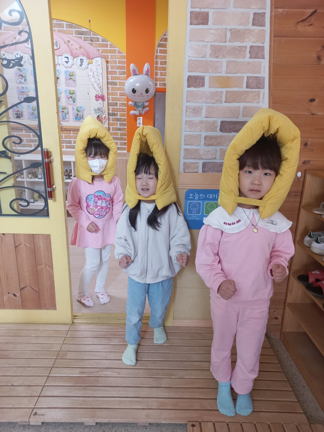 ▣ 유아들은 “지진이 나면 먼저 책상 밑으로 들어가 우리 몸을 먼저 보호해야 해요”, “지진 진동이 멈추면 지진대피모자를 쓰고 빨리 밖으로 대피해요.”라고 말하며 대피훈련 후 소감을 이야기 하였다.