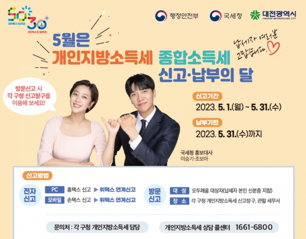 [금요저널] 대전시는 5월은 종합소득분 개인지방소득세 신고·납부의 달이라고 밝혔다.
