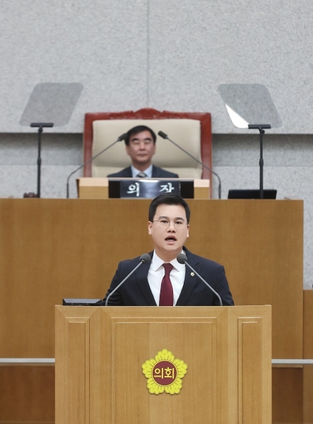 [금요저널] 경기도의회 건설교통위원회 유형진 의원은 26일 제368회 임시회 제2차 본회의에서 5분자유발언을 통해 소독제 시험기준 마련과 관리방안 강화, 소독방식에 대한 경기도 차원의 세부지침 마련 및 관리·감독, 소독제에 대한 호흡기 독성시험기준을 마련할 것을 촉구했다.