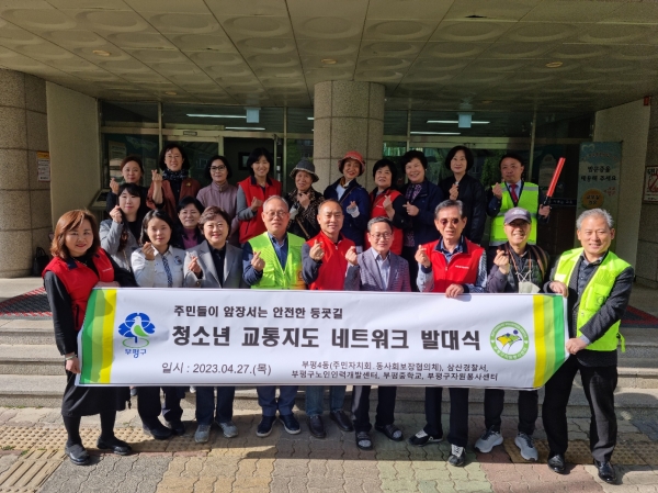 이날 발대식에는 부평4동 주민자치회, 동 사회보장협의체, 통장자율회, 삼산경찰서 부평구 노인인력개발센터, 부평중학교, 부평구자원봉사센터가 참석한 가운데 교통안전에 대한 교육을 받고 자원봉사자로서 활동에 적극 참여할 것을 약속했다.