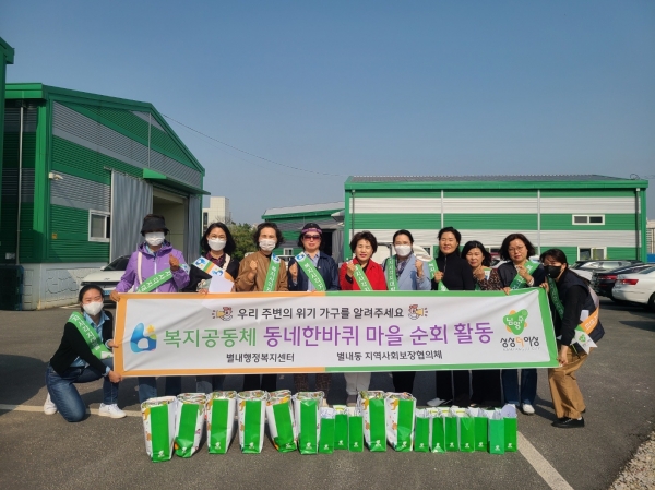 이날 별내동 지역사회보장협의체 위원들은 마을 순회 활동을 하며 인근에 거주하시는 취약계층 가구를 방문해 후원 물품을 전달하고 생활에 불편한 사항을 확인하는 등 복지 욕구 파악과 서비스 연계를 위한 노력을 기울였다.