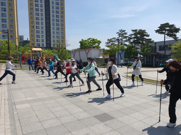 [금요저널] 시흥시 중부건강생활지원센터가 지난 4월 28일 목감공원에서 걷기프로그램 참가자를 대상으로 노르딕 워킹교실을 운영해 주민들의 큰 호응을 얻었다.