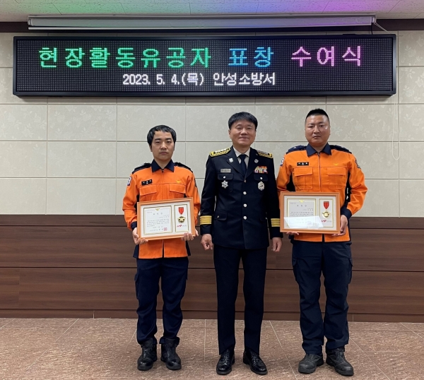 김범진 안성소방서장은 “소방공무원으로서 도민의 재산과 생명을 지켜내기 위해 솔선수범한 대원을 격려하기 위해 수여했으며 앞으로도 신속하고 효과적인 대응체계를 확립해 도민의 생명과 재산보호에 최선을 다하겠다”고 전했다.