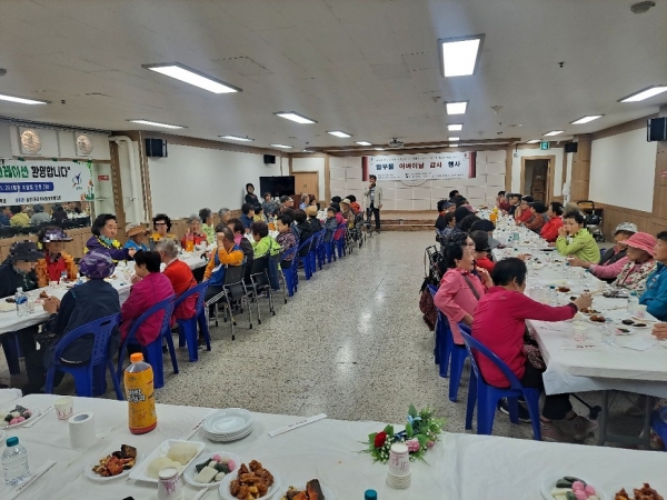 협의체 위원들은 지난 3일 매주 진행하는 웃음치료의 날 프로그램에 참여한 노인들에게 떡, 치킨, 과일 등을 대접하고 신나는 레크리에이션을 진행했다.