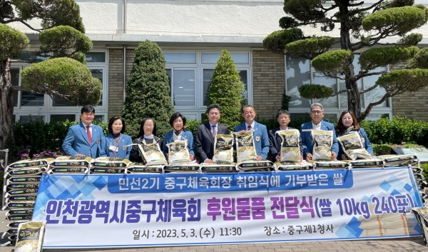 인천중구체육회, 취임 기념 쌀 240포 지역에 환원‥이웃 사랑 실천 ‘눈길’
