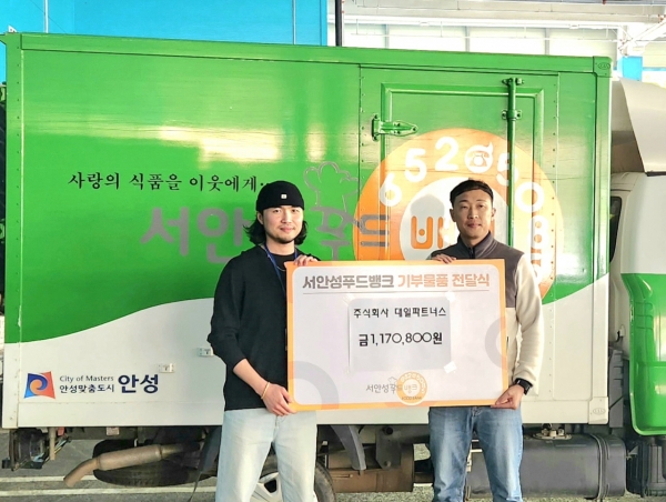 ㈜대일파트너스 대표 김정우는 “평소 기부에 관심이 많았는데 이번 기회를 통해 나눔을 실천할 수 있어 기쁘다. 앞으로도 서안성푸드뱅크를 통해 더 많은 기부 참여를 하겠다”고 전했다.