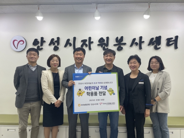 [금요저널] NH농협은행 안성시지부가 어린이날을 기념해 지난 5월 4일 안성시자원봉사센터에 500만원 상당의 학용품을 기탁해 전달식을 진행했다.