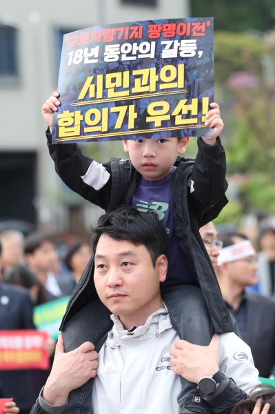 촛불행진 선두에 선 박철희 광명 이전 반대 공동대책위원회 집행위원장은 “광명시의 위상은 구로차량기지 광명 이전이 시작됐던 18년 전과 달라졌다”며 “광명시민들이 그동안 성숙한 시민의식 속에서 정부에 철회와 백지화를 요구해온 만큼 이제는 정부가 시민의 뜻을 받아들일 때”고 촛불행진 배경을 설명했다.