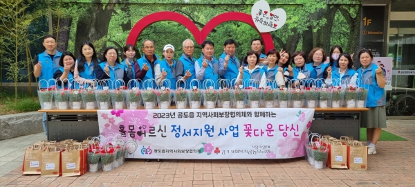 금번 활동은 어버이날을 맞이해 카네이션 꽃화분으로 준비했으며 지난 3월부터 시작한 이 사업은 공도읍지역사회보장협의체 위원들이 적극 참여하는 가운데 어르신들의 큰 호응과 만족도를 얻고 있다.