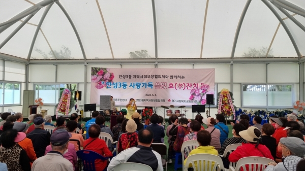 [금요저널] 지난 5월 4일 안성3동에서는 가정의 달을 맞아 경기사회복지공동모금회 배분사업으로 사업비 400만원을 지원받아 안성3동지역사회보장협의체가 주관하고 각 기관사회단체가 후원하는 “안성3동 사랑가득 은빛 효 잔치”가 성황리에 개최됐다.